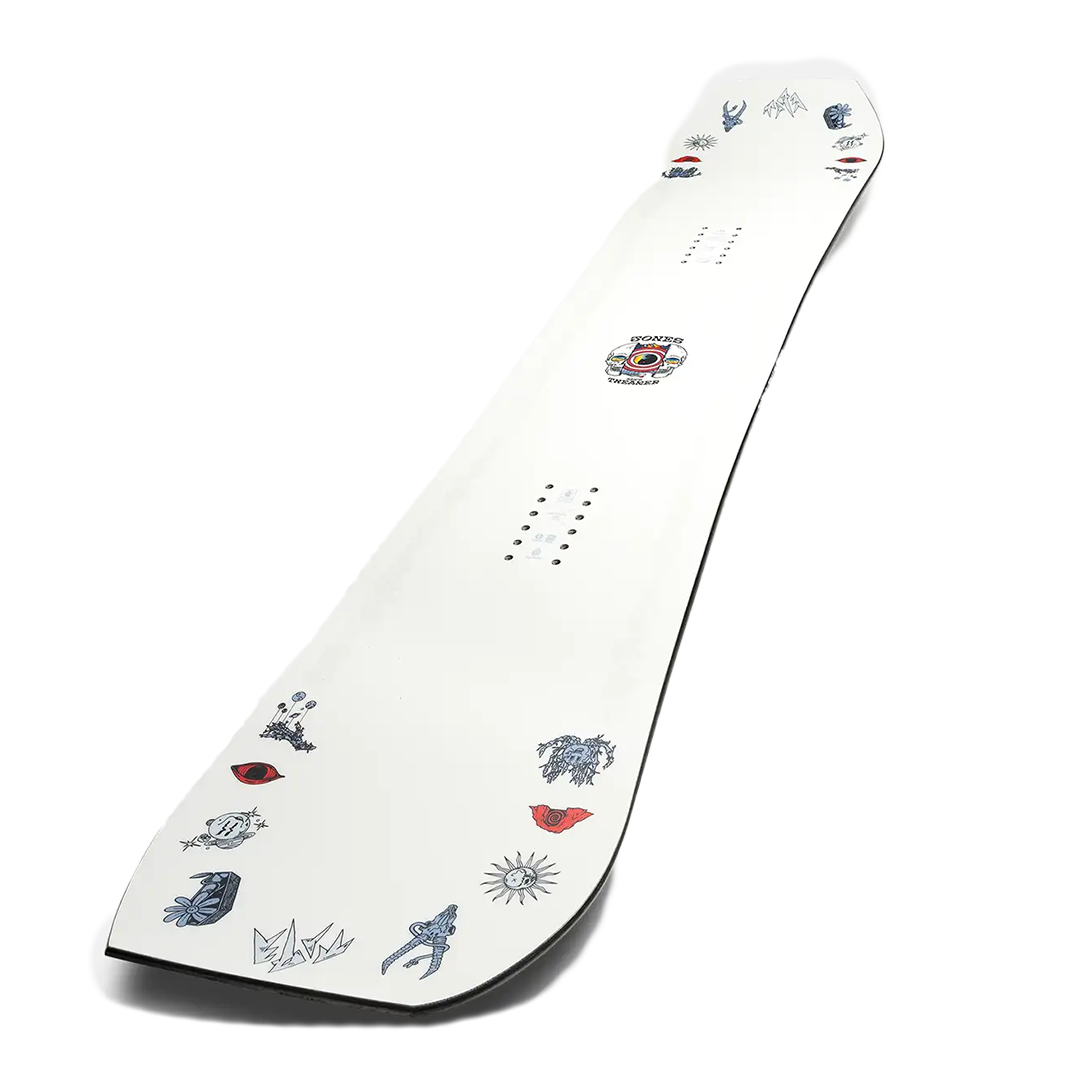 Compared to the Mountain Twin or Frontier, the Tweaker is softer and more pressable. It’s ideal for creative riders who want the power of camber with the freedom to play, jib, and ride switch all day long.