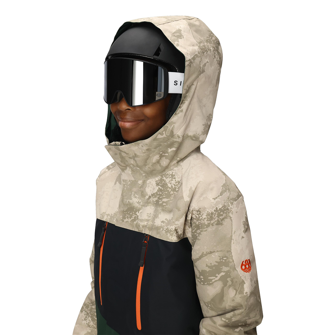 - Features: Room-To-Grow sleeves, powder skirt, helmet-compatible hood, adjustable cuffs