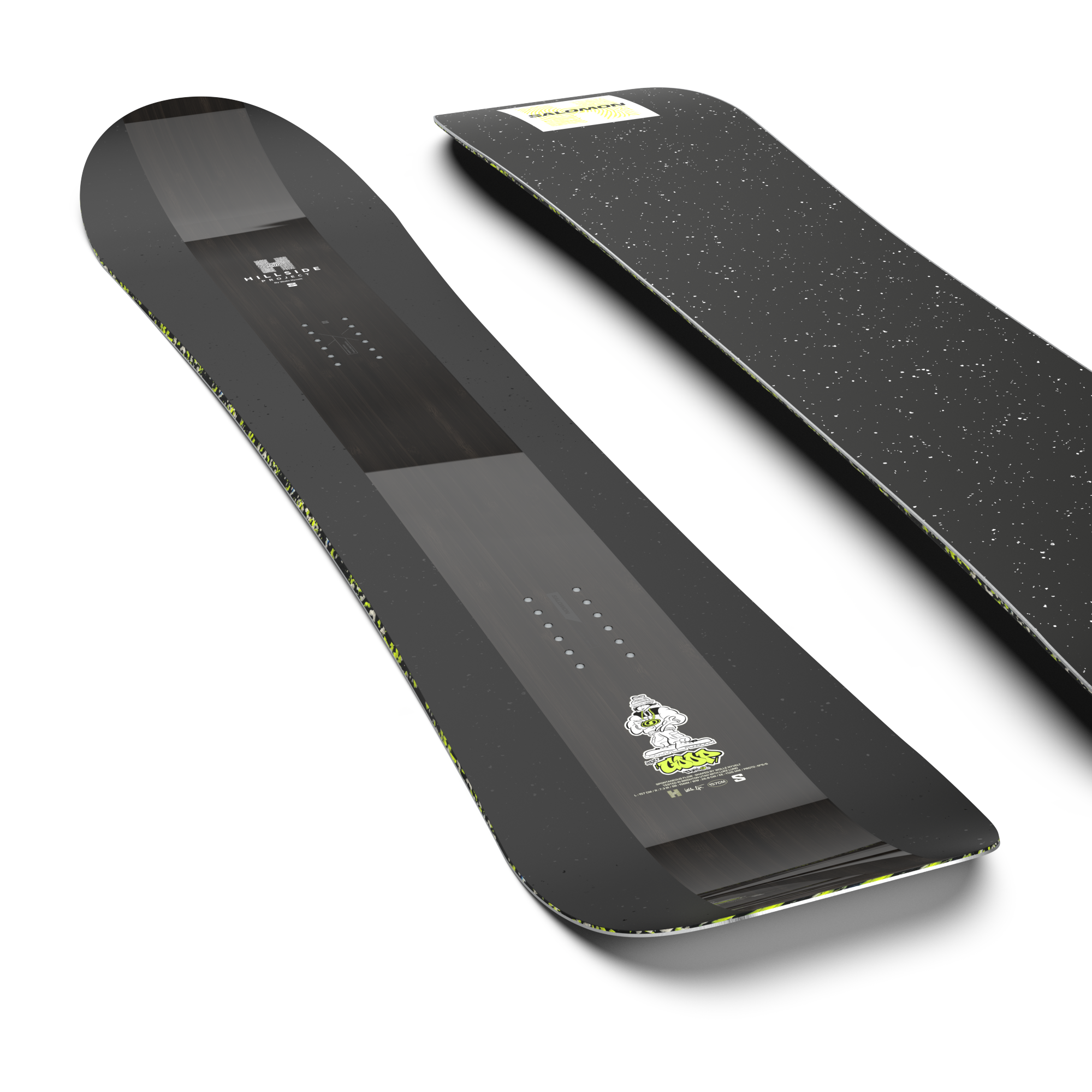 Salomon HPS Goop Snowboard 2026 - A black snowboard with a white and green design on top of it.