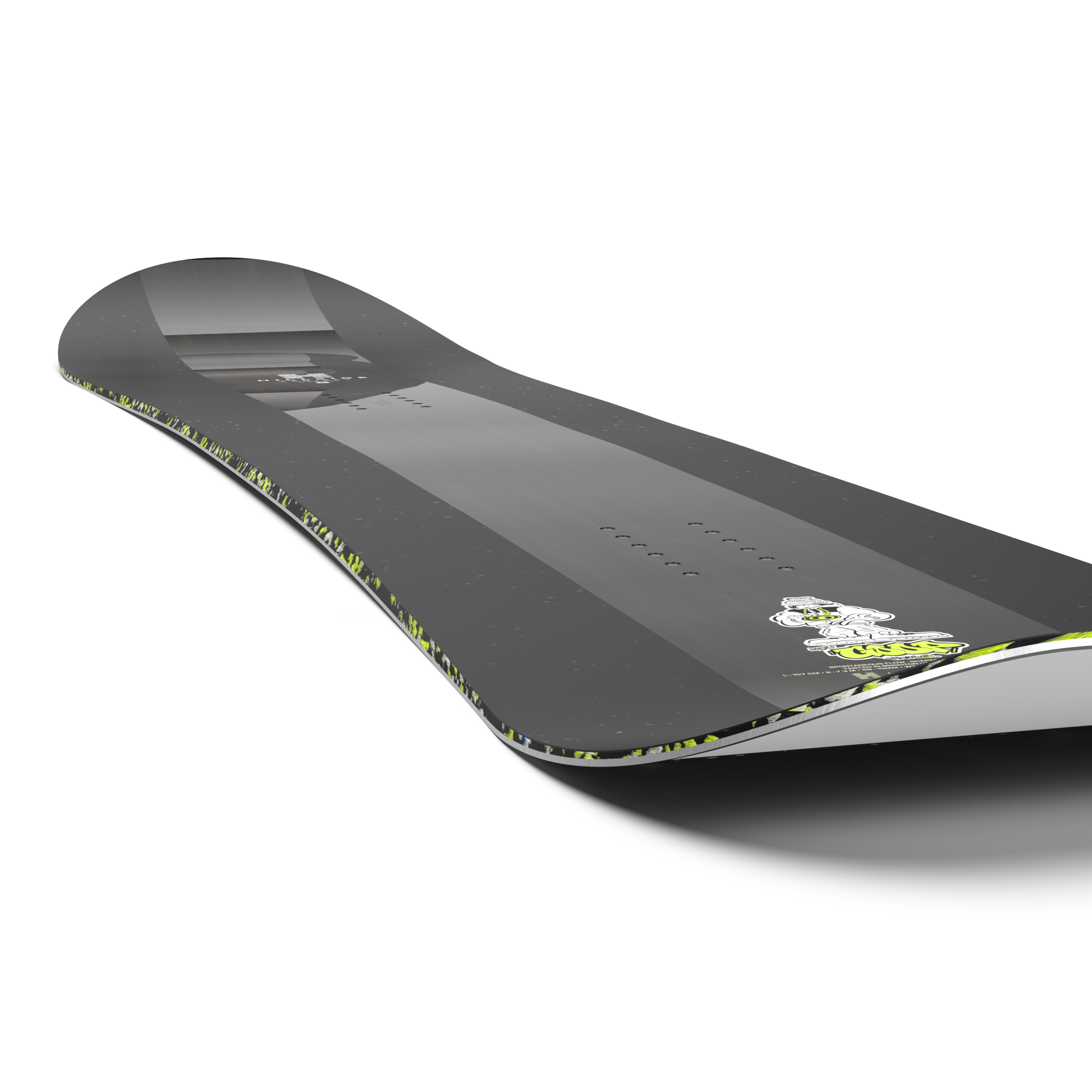 • Rock Out Camber: Camber between your feet for snap and stability, flat zones for edge hold, and rocker at tip and tail for surfy control.