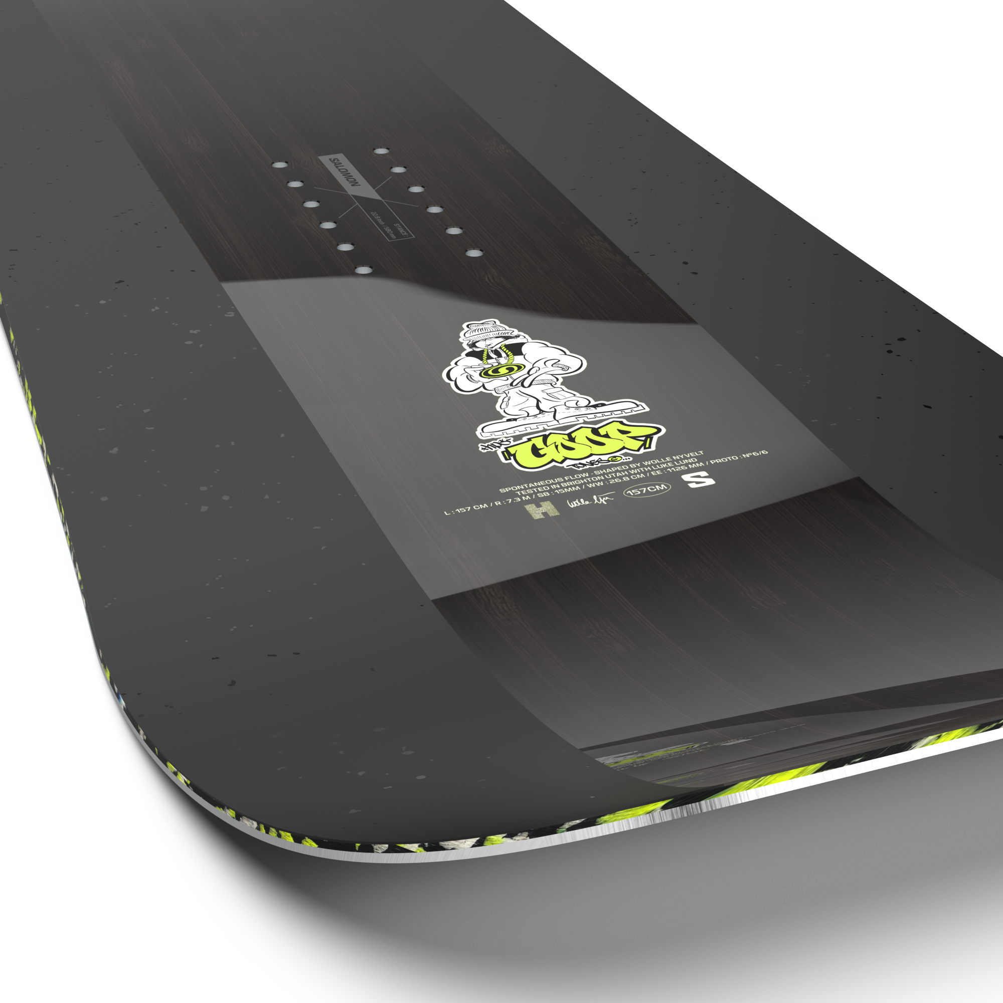The 2026 Salomon HPS Goop, designed in collaboration with Wolle Nyvelt and Takaharu Nakai, blends Japanese powder-surf inspiration with all-mountain capability — delivering effortless float, responsive carving, and a surfy, playful ride.
