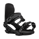 Arbor Hemlock Boss Dog Snowboard Binding - A black snowboard binding with a white logo on the top strap and a silver buckle.