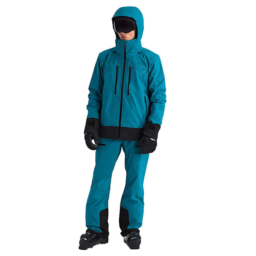 - Ski‑ready features: Snap‑down stretch powder skirt with silicone gripper tape + jacket‑to‑pant clip, integrated wrist gaiters with thumbholes, adjustable gusseted cuffs, and hem cinch for snow protection and secure fit.