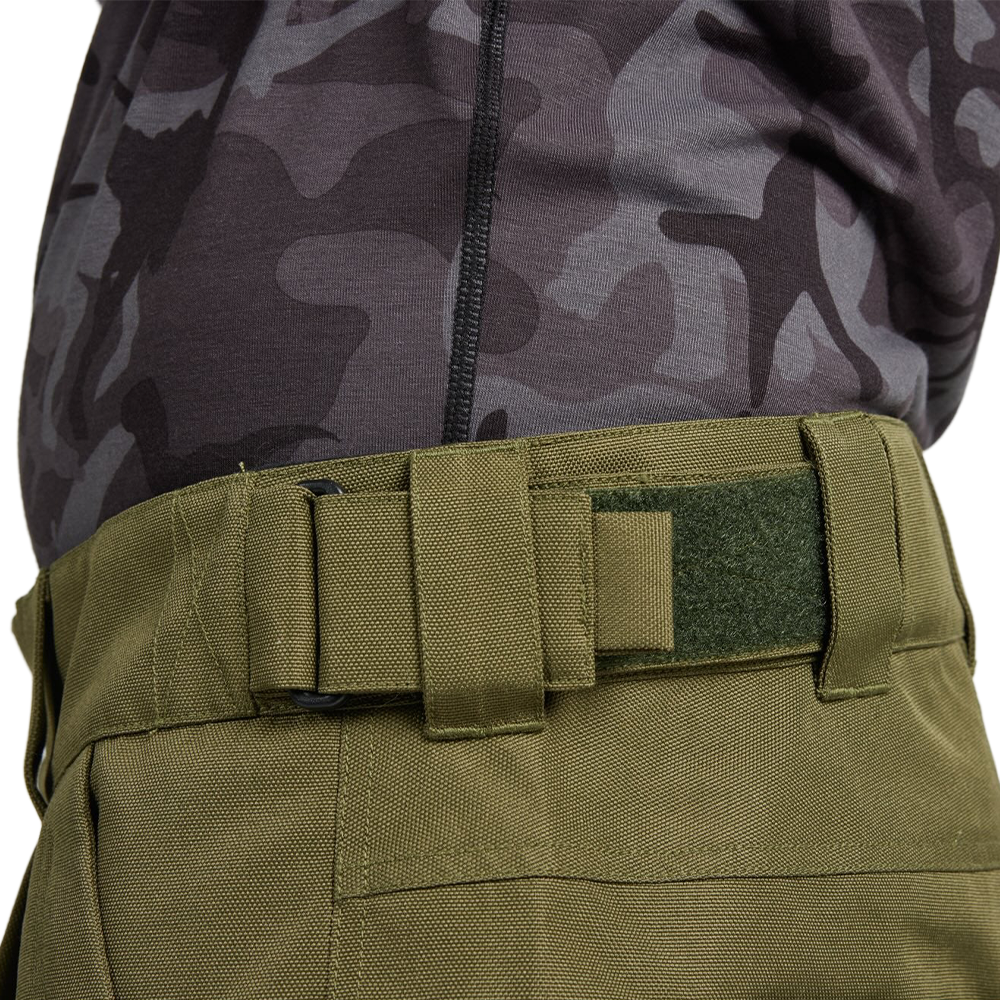 - Heavy‑duty details: Adjustable hook‑&‑loop plus elastic waistband tabs, belt loops, 2 zippered pockets, heavy duty rear pocket closures, leg gaiters with lace‑hook and hidden draw‑cord cuff cinch.